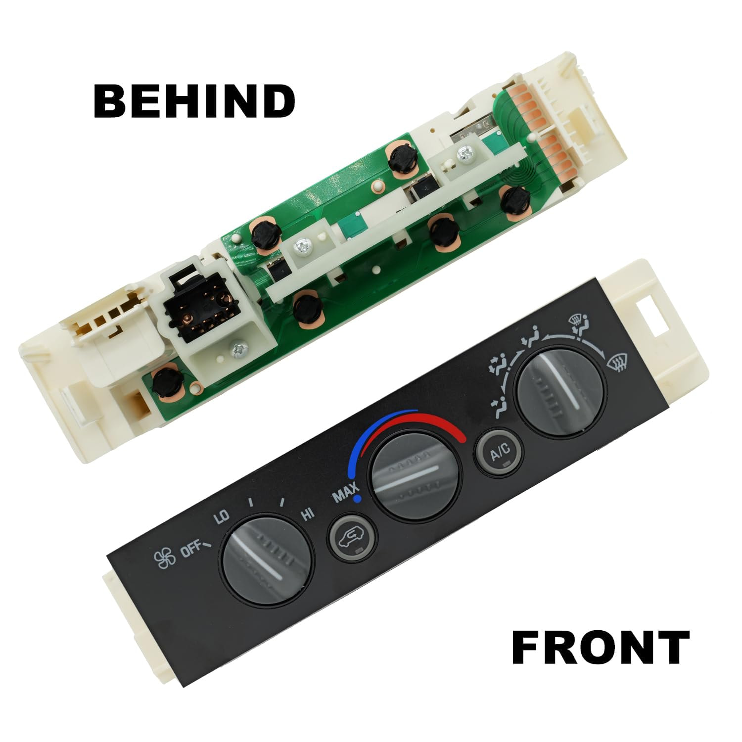 The HVAC controls slide in and out. There are 6 bulbs at the back that can be changed to LED by simply twisting the sockets out and replacing.